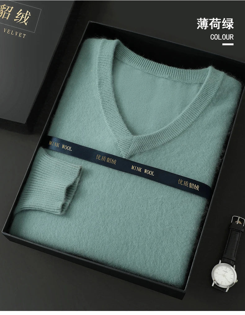 Suéter Masculino 100% Cashmere de Mink com Decote V – Luxo, Conforto e Aquecimento Superior